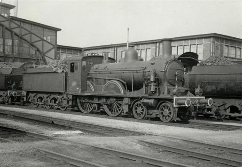 Stoomlocomotief nr. 1923 (serie 1900) van de N.S. bij de locomotiefloods te Roosendaal.