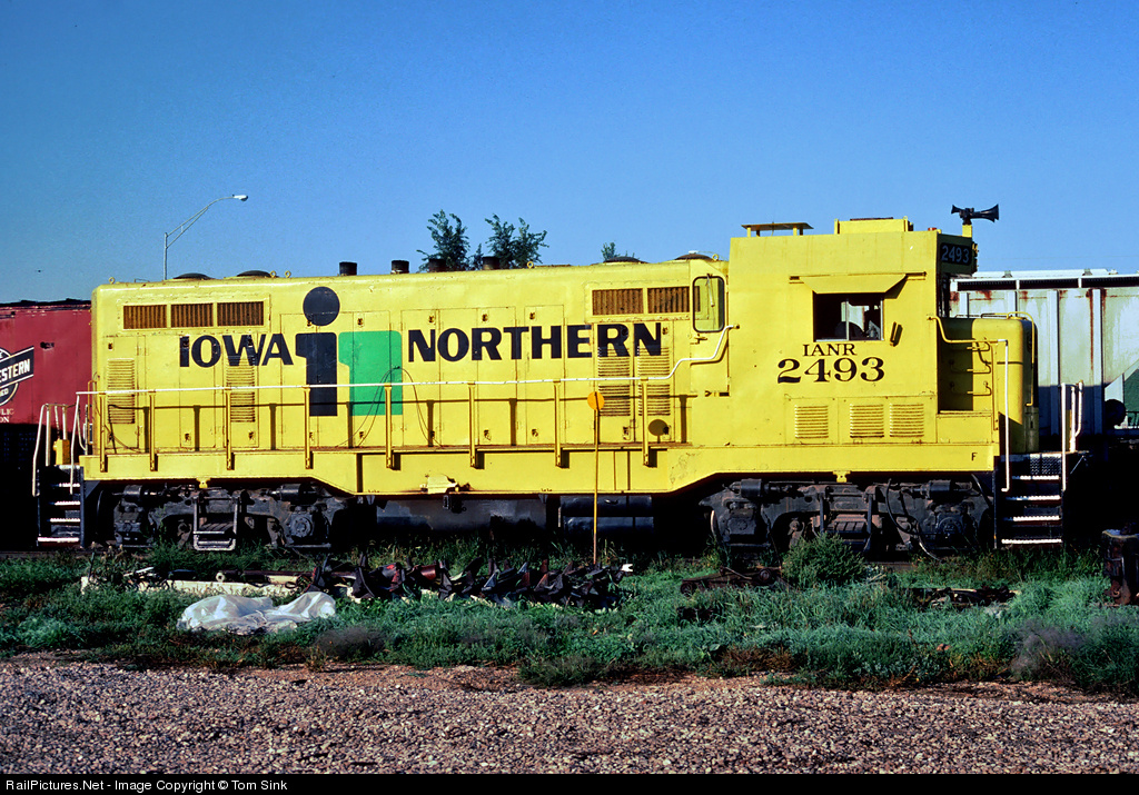 Een EMD CF7 van Iowa Northern, IANR 2493, bij Waterlo, Iowa