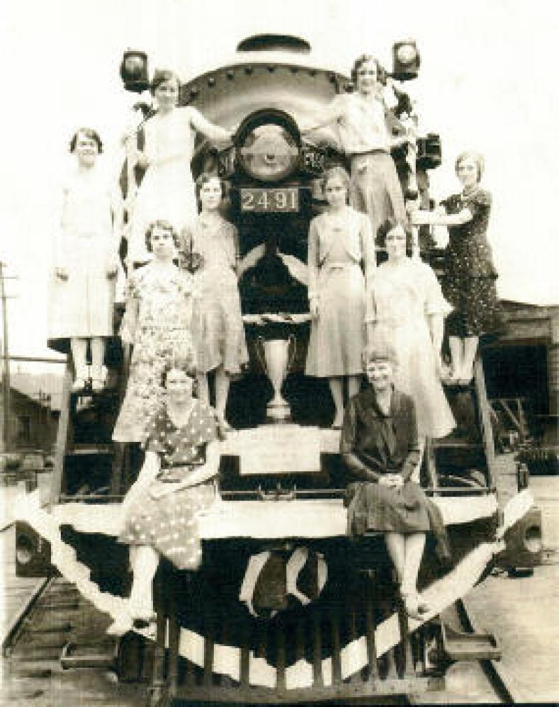 Stomer van de Shiawassee County Railroads en op de 2e foto dezelfde lok met een reeks dames erop uit Owosso.