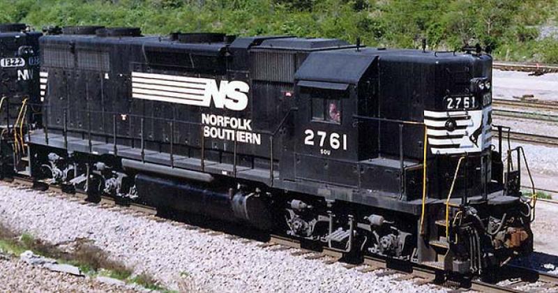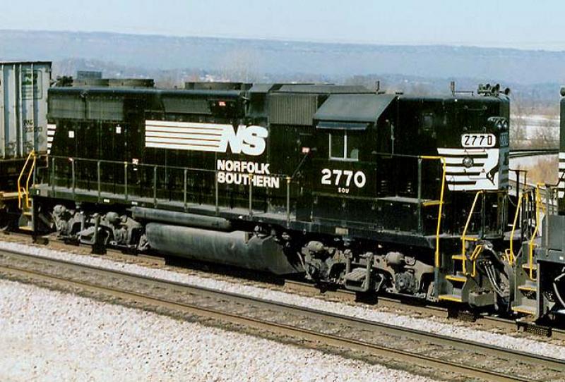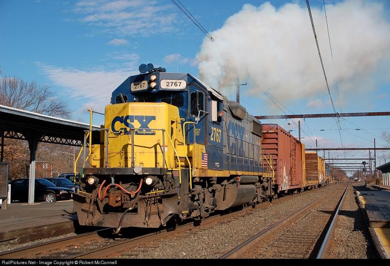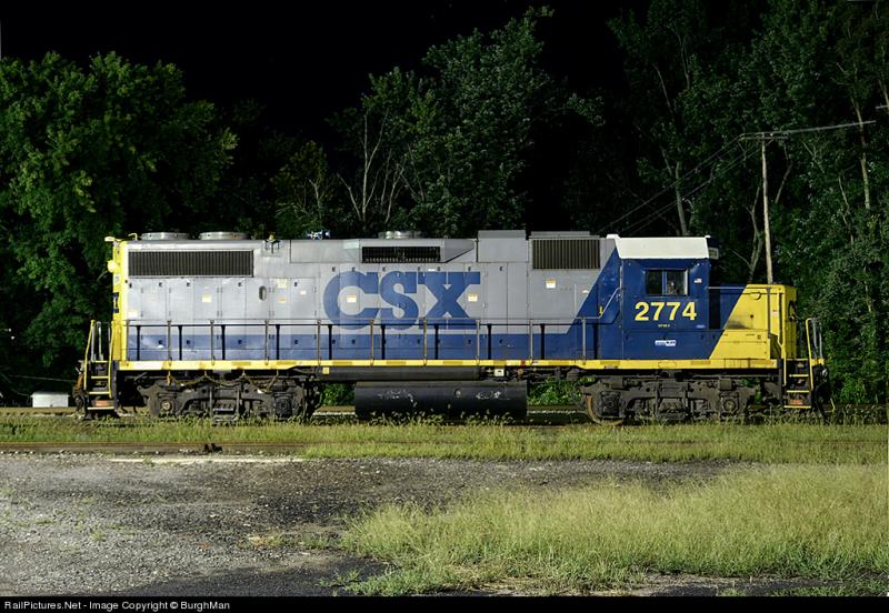 CSX 2762 een EMD GP38-2 samen met een soortgenoot in de nieuwere CSX kleuren.