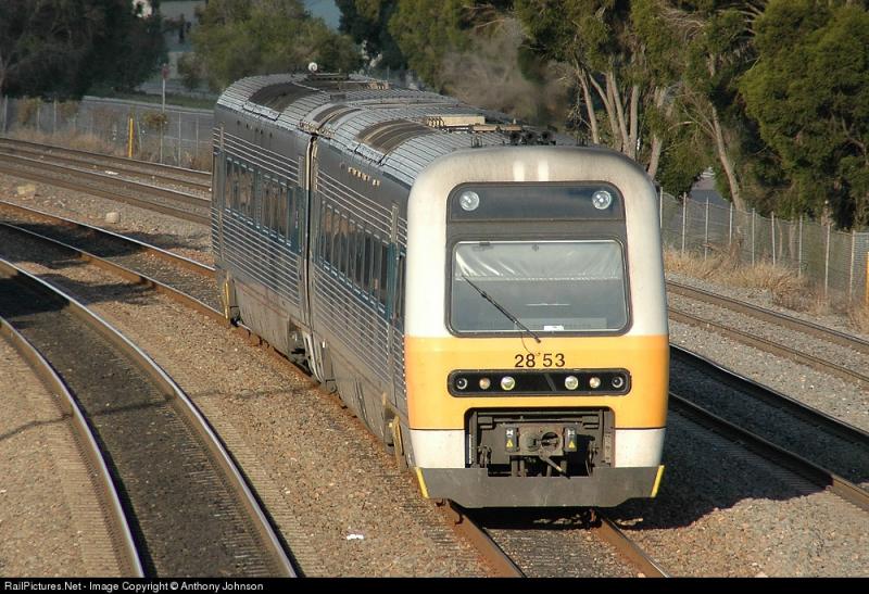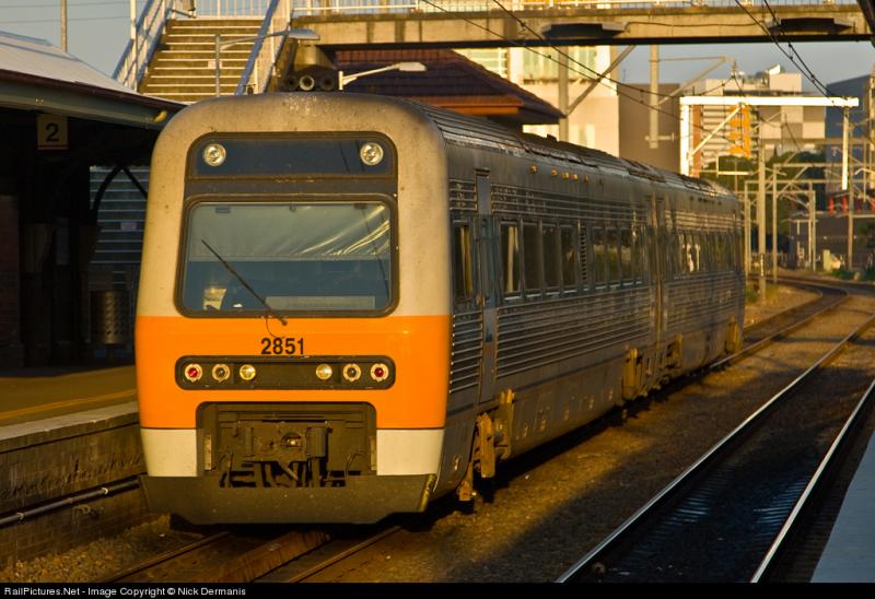2858 verlaat Moss Vale station in de richting van Campbelltown, Nieuw Zuid Wales Australie.