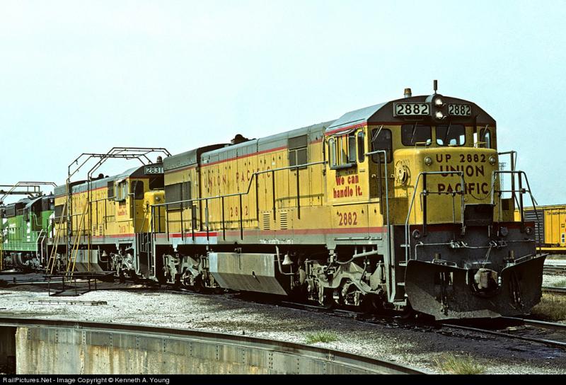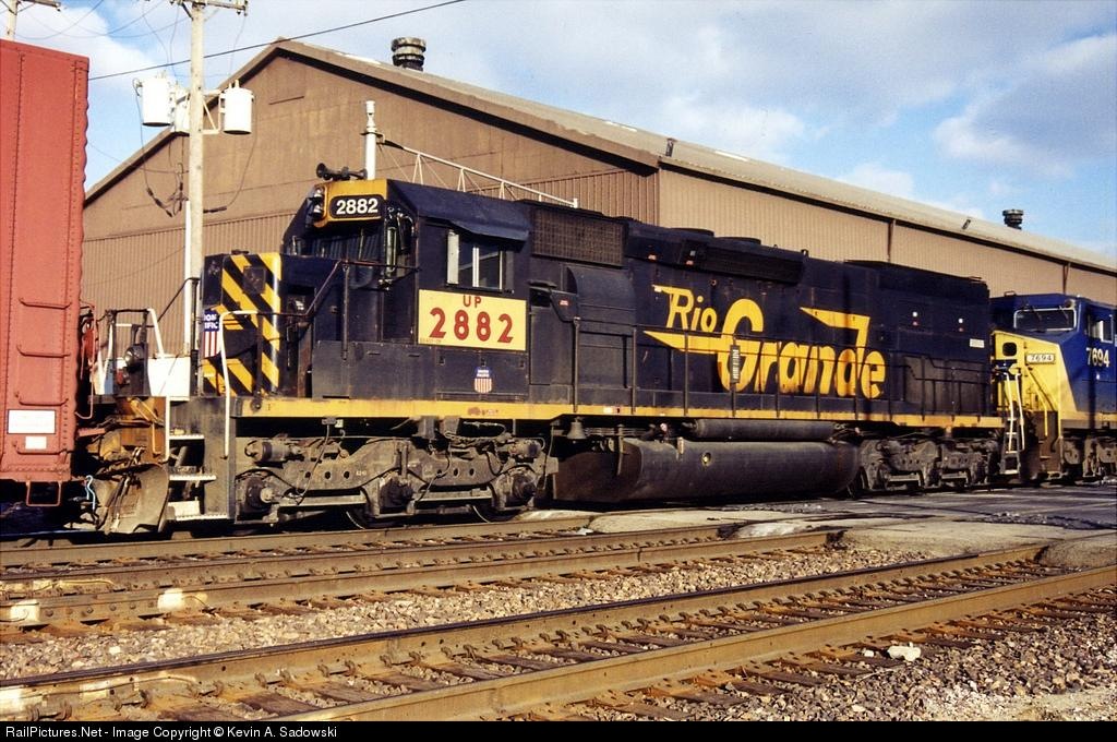 Zoals dat zo vaak gebeurde in de states: Een Rio Grande loc is overgenomen door Union Pacific en heeft met een "patch" een nieuw nummer gekregen (2882).