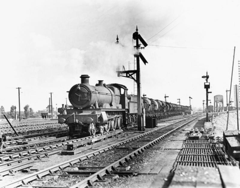 Saint' Class 4-6-0 steam locomotive, No. 2908 'Lady of Quality', on the main line with a train of empty milk tanks for West Wales, 1943. Most of London's milk was carried by rail from concentration points in Wales and the West Country direct to depots own.