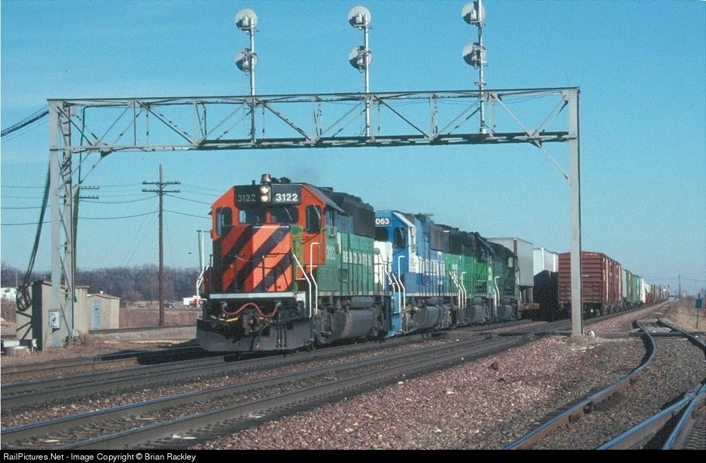 Burlington Northern 3122 bij Aurora, Illinois
