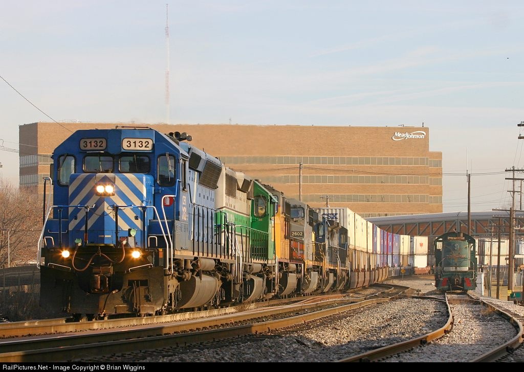 CIT Equipment Finance Corp. (CEFX) 3132 voor een interessante lineup van loc's nadat twee treinen zijn gecombineerd om samen verder te gaan bij Evansville, Indiana