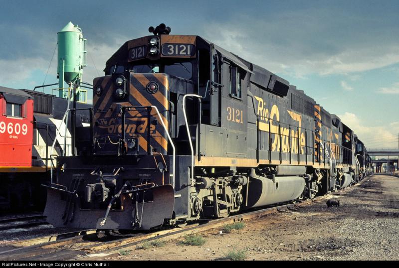 De Denver & Rio Grande Western Railroad nummer 3130, een EMD GP40-2 bij East City - NS New Orleans Terminal. Met al zijn lichten aan trekt hij een CSX / SP stack trein door de New Orleans Terminal.