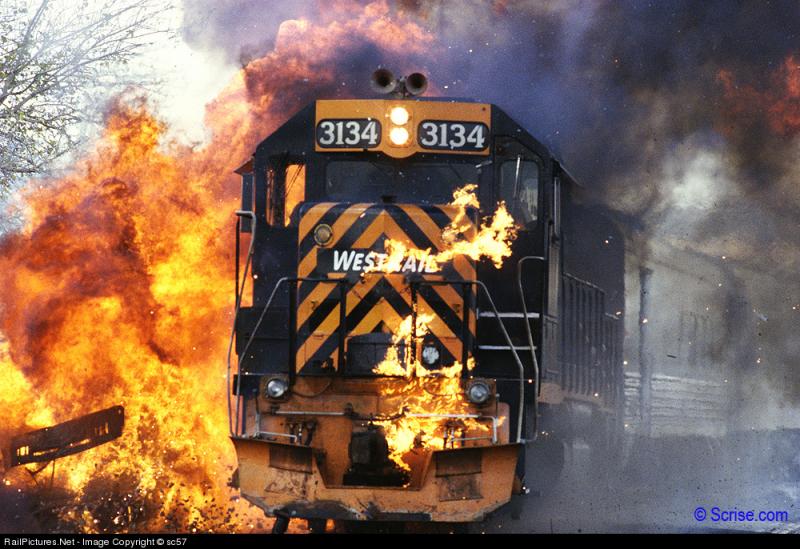 Januari 1998, filmstunt met de 3134 en een Pontiac Firebird bij de Santa Clarita Railroad.
