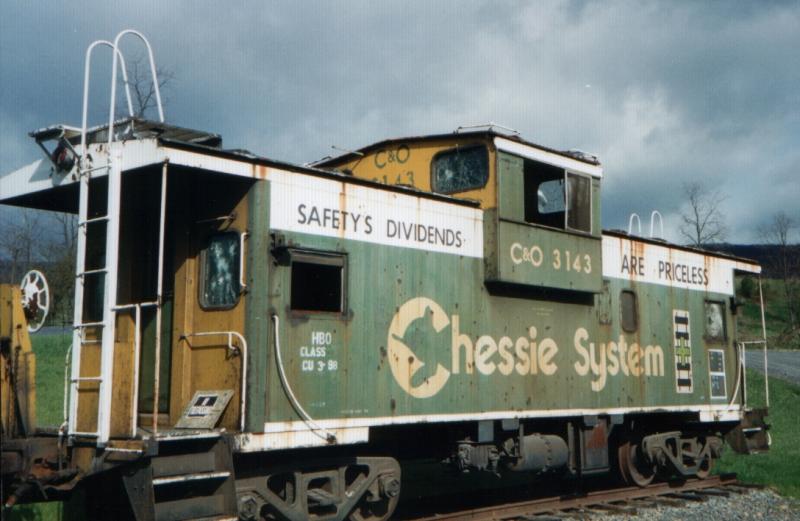This former C&O Cab is currently located outside of Keyser, West Virginia. The 3143 was built in 9/68 and was delivered in the C&O’s attractive blue and yellow paint. These Chessie Safety Caboose colors were applied late 1976 and the 3143 was assigned to Grand Rapids, Michigan. The 3143 was unique in being the only safety cab with yellow ends.