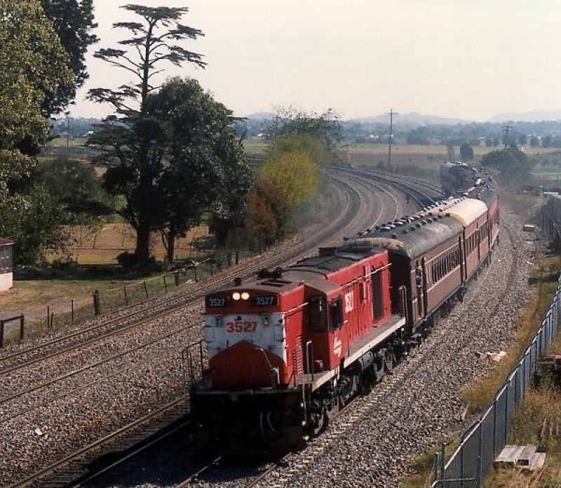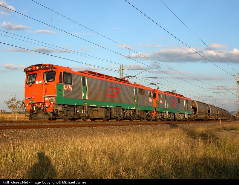 QR 3536/3615 + 3532/3562 + ELRC 137 remmen af voor een rood sein op de North Coast Line/Blackwater System met kolentrein #EL39. De helper locs middenin de trein worden op afstand bediend door de machinist door middel van een ELRC
