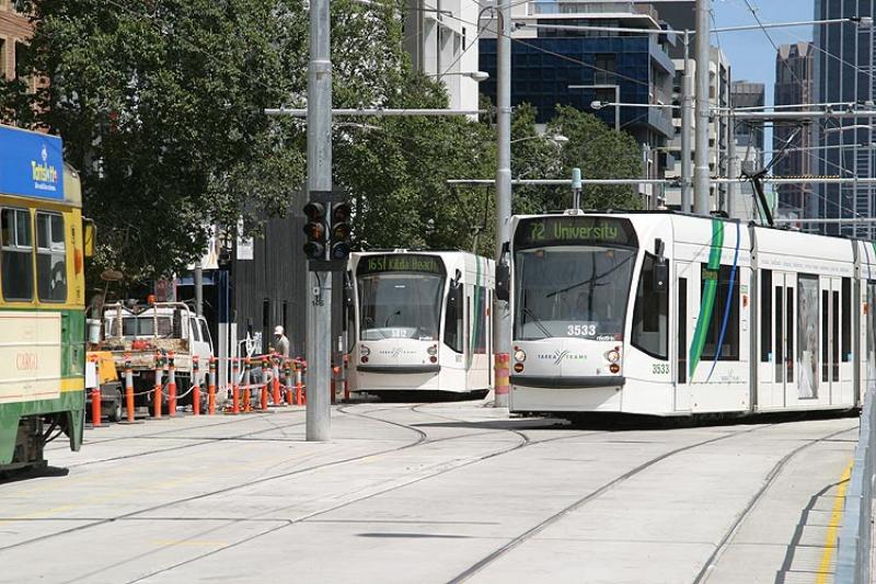 D1 3533 in Yarra Trams livrei in de buurt van de universiteit van Melbourne.