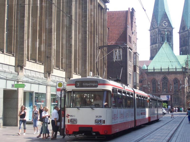 Bremer Strassenbahn AG tram 3529 stopt Am Markt.