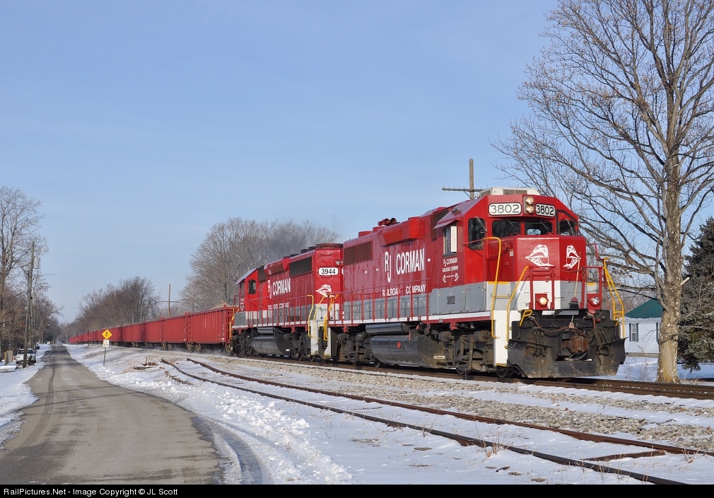 R.J. Corman Railroad 3802 bij Bagdad, Kentucky
