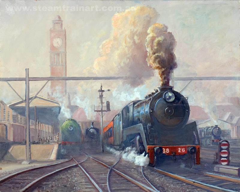 Bron: http://www.steamtrainart.com.au/forsale.php, en zo te zien is het schilderij nog te koop ook