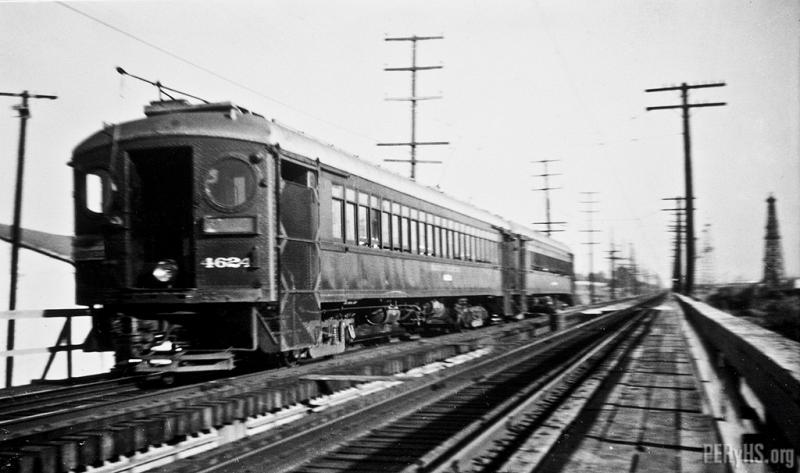 Pacific Electric 4624 op de Old Los Angelus River Bridge van de Long Beach Line.