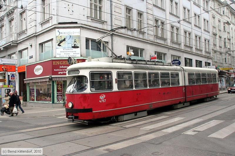 Tram 4757 op lijn 33 bij halte Lange Gasse - Wenen