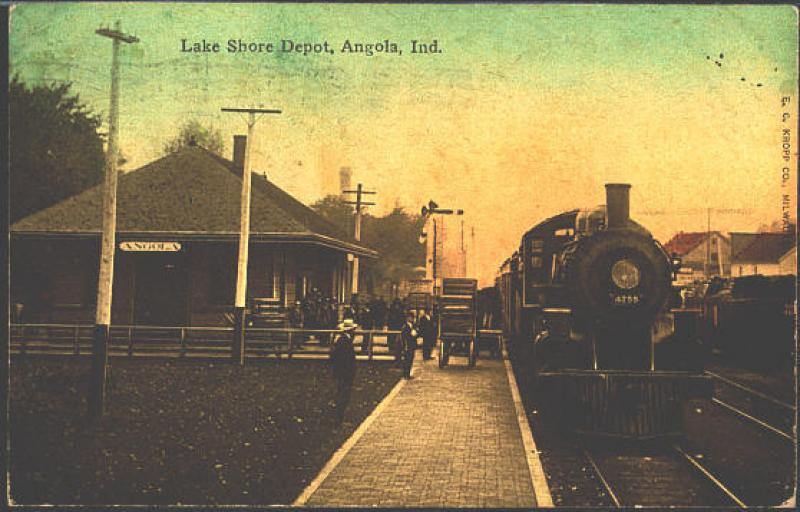 Angola Indiana 1911 Lake Shore Railroad Depot & Train 4755 Vintage Postcard