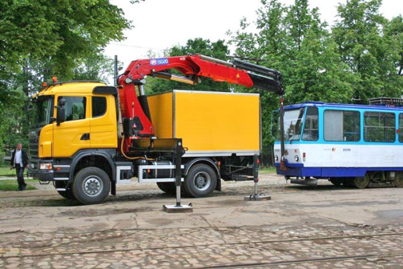 Trams zijn wel eens het spoor bijster... In Riga worden ze weer in de rails gezet met dit voertuig, bij HMF gebouwd en het kraantype is HMF 6020