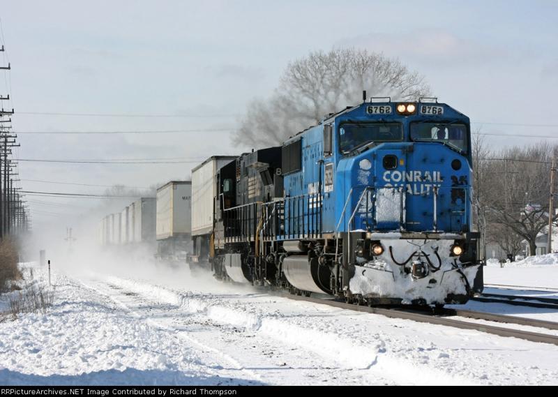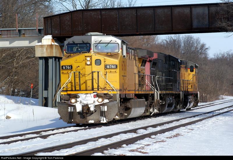 6750, met een trein op de achtergrond