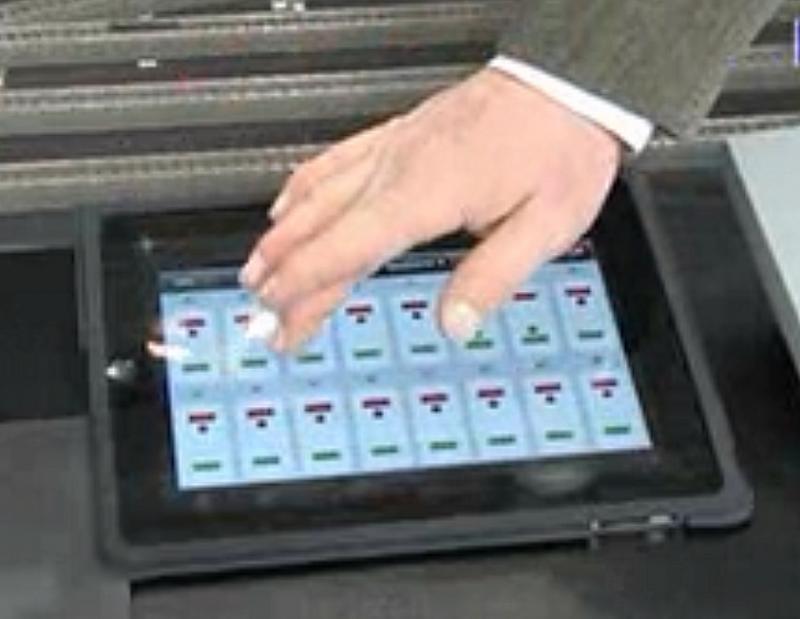 Dat is geen Ipad die veel veel groter is, dit is volgens mij een Iphone of een andere smartphone. ik denk dat Märklin met een apps komt voor het besturen van DCC via je mobieltje. Wel een heel goed idee als dat zo is.