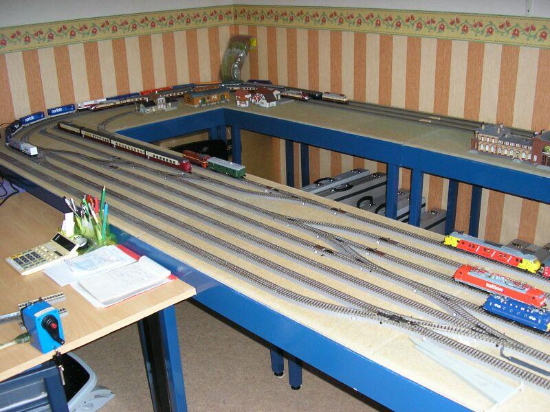 Lijkt me niet slim aangezien je dus planken op elkaar wil gaan plaatsen, dit lijkt me niet bevordelijk voor je scenery, huisjes, lantaarns, bovenleiding enz.