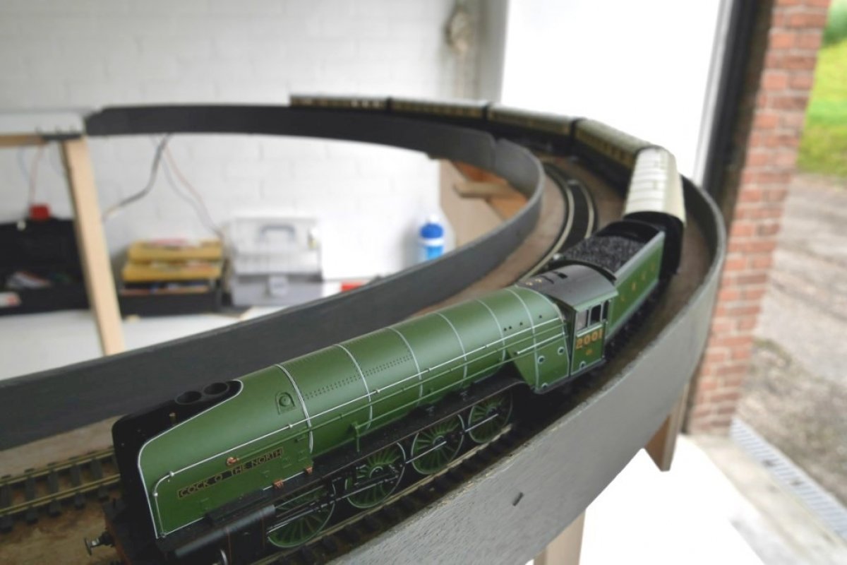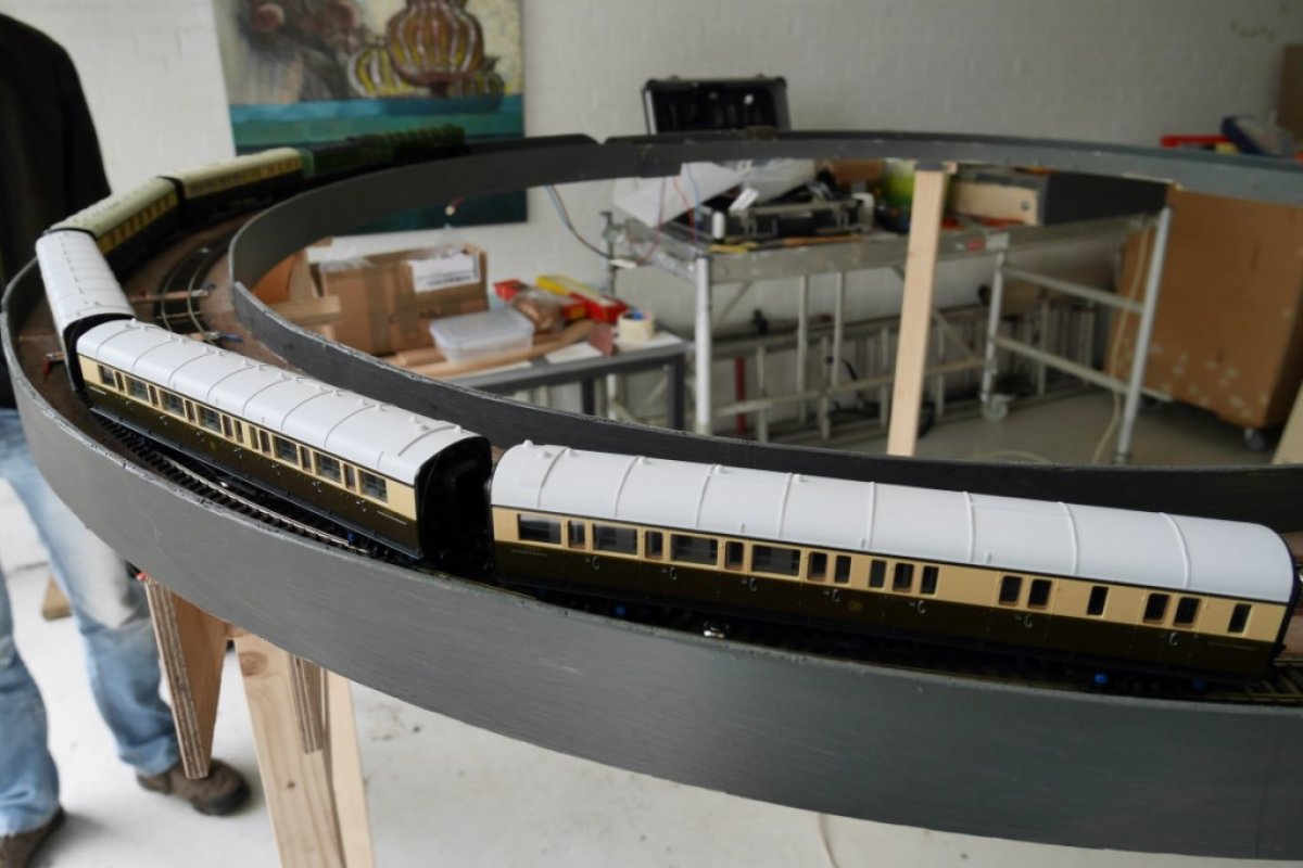 Vanmiddag nog even de BMB-baan getest met een GWR-trein die ik van een forumlid overgenomen heb.Hier zie je hem achter de P2:en op de keerlus:Leen.