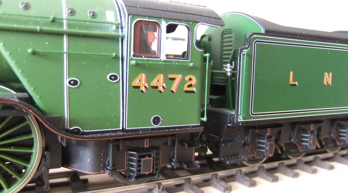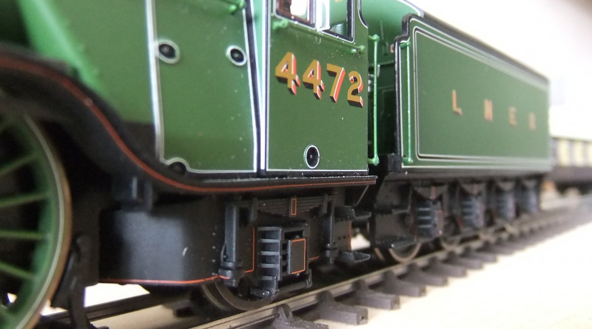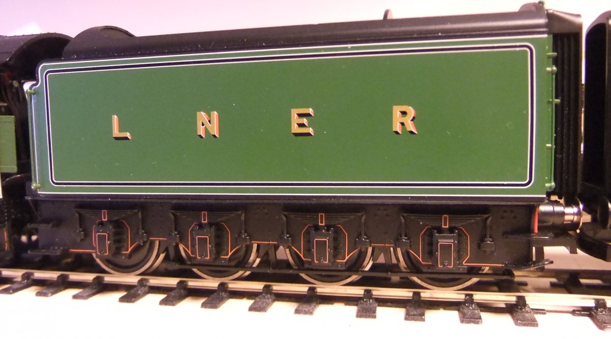 In de 4-assige Hornby tenders voor dit type loks zitten de voorste en achterste wielen lager in het chassis dan de twee middelste.