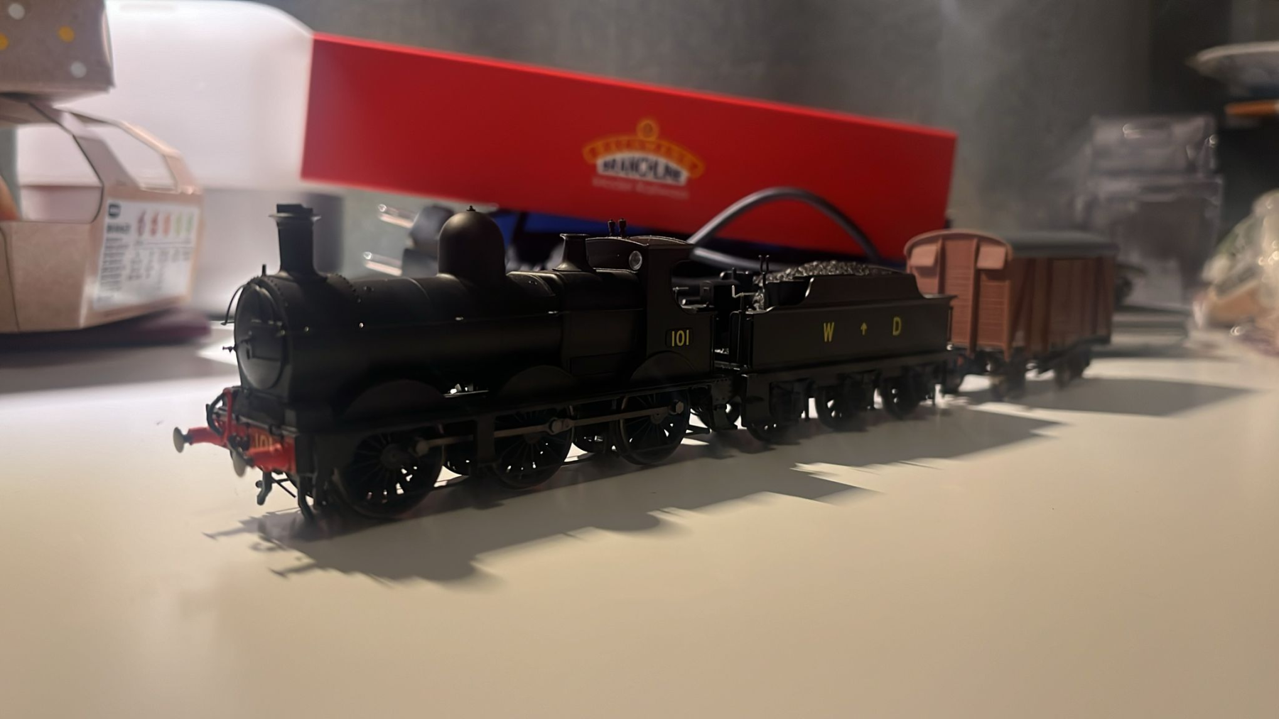 Een Oxford Rail WD Dean Goods en een Bachmann E4 in LBSC livery. Daarbij ook nog een leuke LMS Van van Dapol. Erg blij mee!