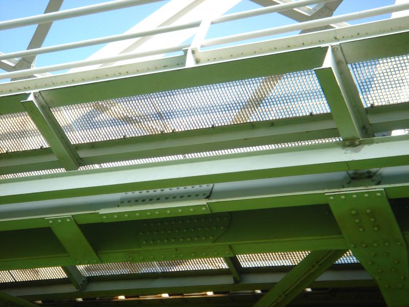 Voorlopig het laatste wat aan de onderbouw kan worden gedaan, is het aanbrengen van de klinknagelplaten op die plekken waar de delen van de hoofdonderliggers in werkelijkheid aan elkaar zijn gezet. Liggers van bijna 70 meter zijn niet over de weg te vervoeren. De hoofdboven- en onderliggers zijn dan ook op de bouwplaats uit meerdere delen aan elkaar gezet. In model bestaan deze liggers uit één stuk, maar de verbindingsplaten mogen natuurlijk (aan de buitenzijde) niet ontbreken. De onderdelen