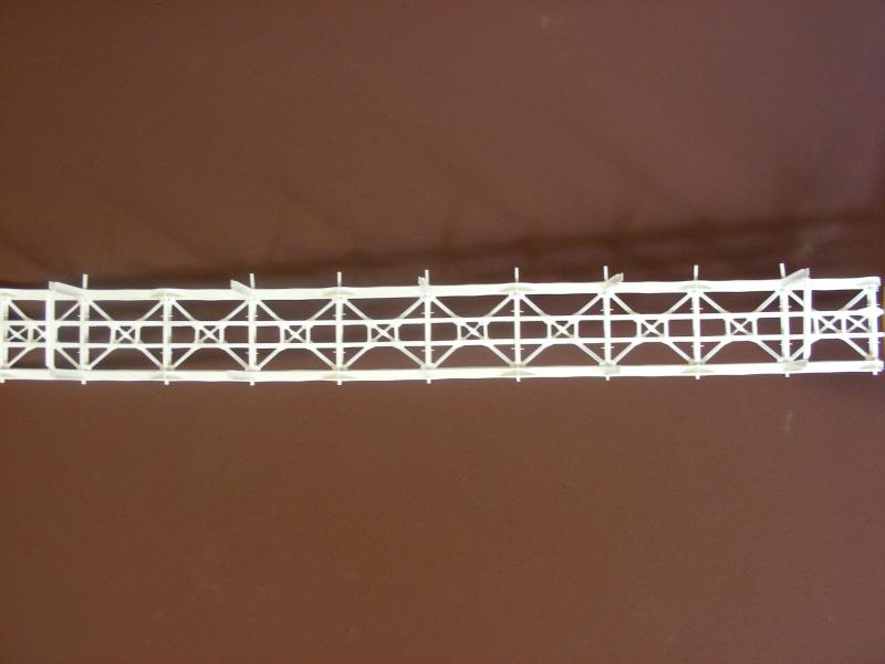 Deze laatste foto toont de 2 volgende stappen die nu op de rol staan: verven en roosterplaten maken. Op mijn foto's lijkt de brug aan de onderzijde groen. Ik moet een keer terug naar Hedel om te zien of dit echt zo is en zo ja welke onderdelen dan. De bovenbouw is in ieder geval wit. Ik wil de onderbouw in ieder geval in de verf hebben staan voordat ik hem verbind met de bovenbouw en de diagonalen aanbreng. Komende week eens kijken of we toevallig in de buurt van Hedel (kunnen) komen. Misschien wel a.s. zaterdag op weg naar Houten. De overige tijd maar eens benutten om een tekening te maken voor het etswerk van de roosterplaten. Ook over de landhoofden moet nog nagedacht worden. Ik hoef dus niet stil te zitten