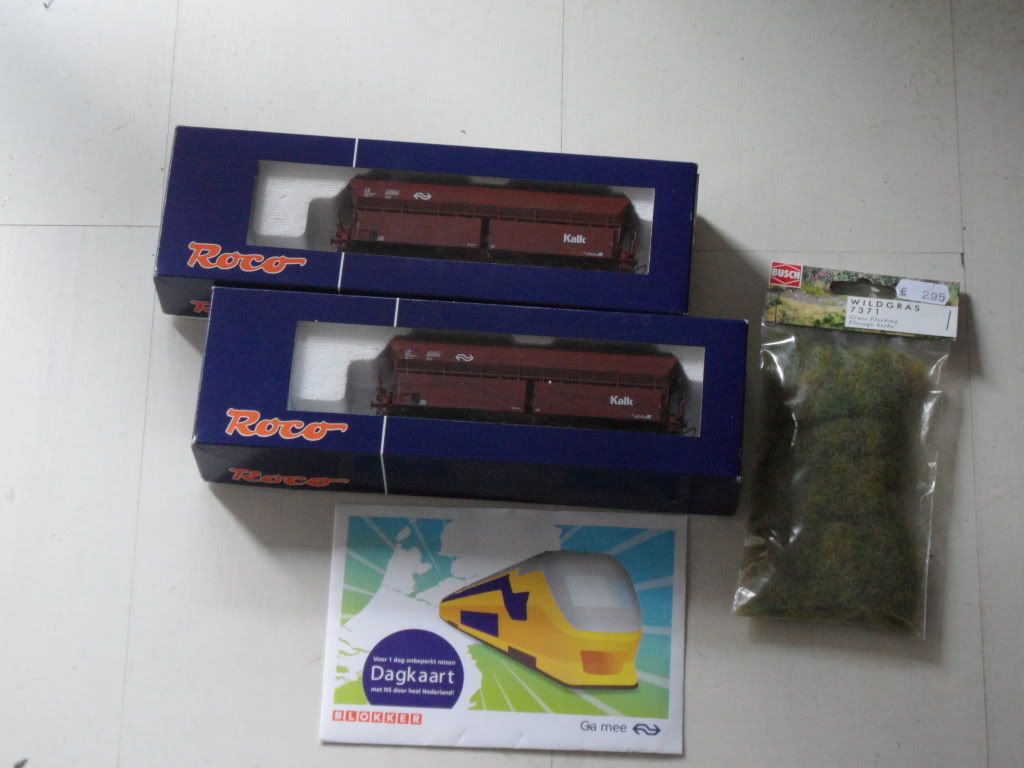 2 NS KALK wagons, wat gras, NS dagkaart.