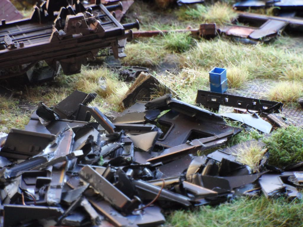 misschien is het een idee om ook een half gesloopte wagon/trein op het sloopterrein te zetten dan is het in ieder geval duidelijk wat het is.