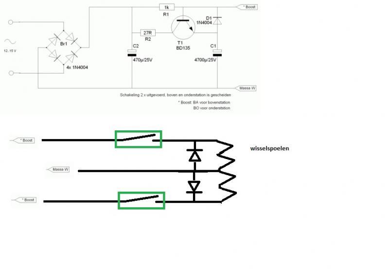 @Maarten, het doel van deze schakeling is: mijn baan heeft 4 rij-stroomkringen en bij het wisselen van een stroomkring worden er max. 2 wissels en 2 minitrix relais omgeschakeld en deze schakelingen moeten tegelijk uitgevoerd worden. Ook op het rangeer gedeelte is het handig om wisselstraten te schakelen.