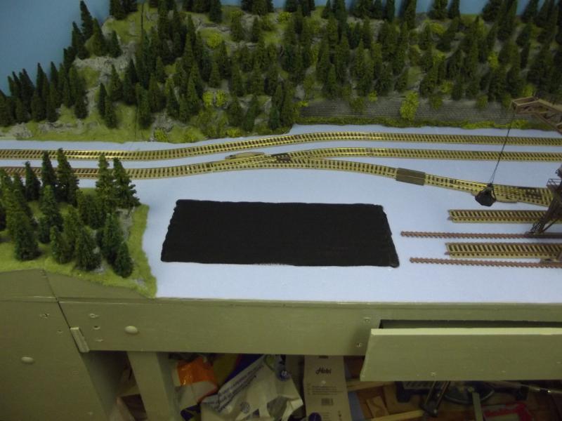 Ik heb vanmiddag geprobeerd om het dak van de lok-loods te demonteren, eerst met een mesje en vervolgens om er lijm op aan te brengen. Dit werkt dus niet, ik heb geen idee waar ik (heel) vroeger dit mee gelijmd heb. We wilden graag een binnen-inrichting en verlichting aanbrengen, dit gaat dus niet lukken. We hebben de ondergrond maar zwart geverfd, zo lijkt het nog enigzins redelijk.