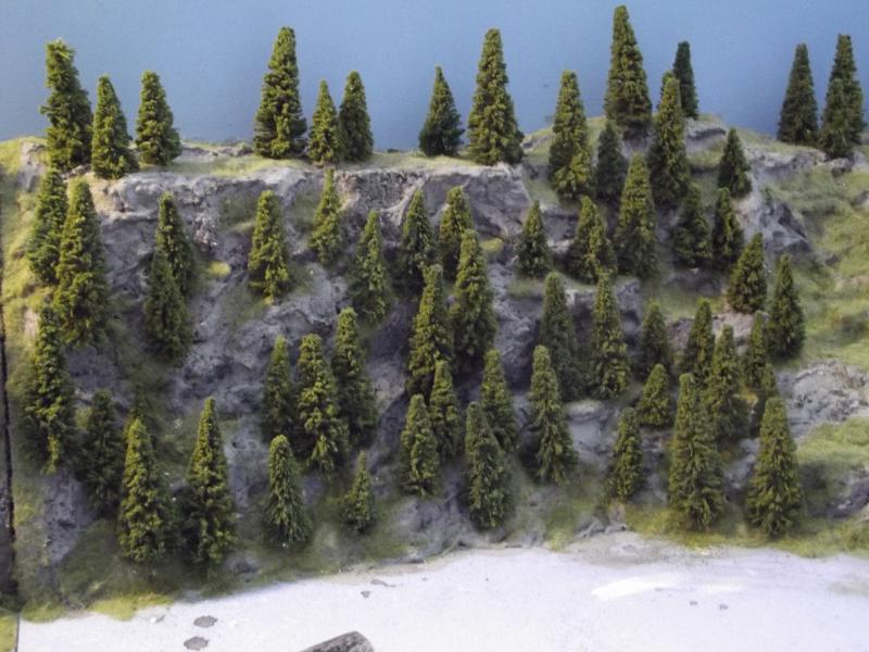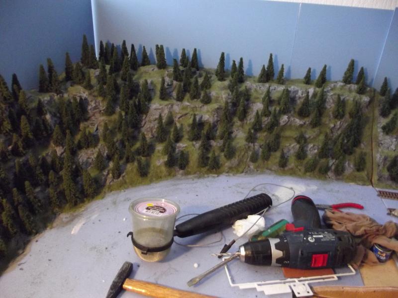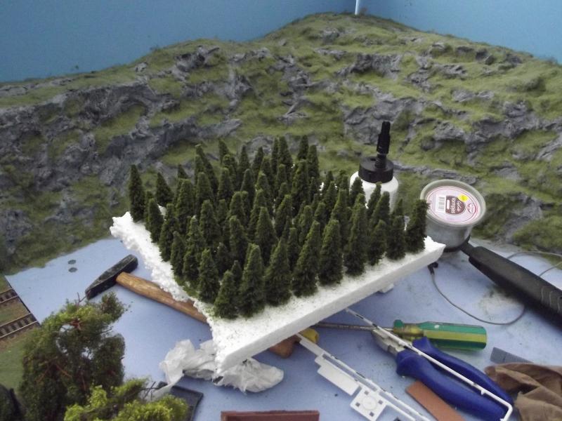Vanmorgen heb ik voorlopig de laatste (naald)bomen op de hoek-module geplaatst, ik kan geen boom meer zien