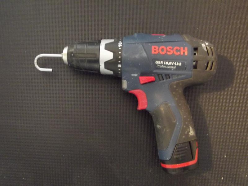 Door gebruik te maken van een schroefmachine, met hier een haakje in, gaat het een stuk sneller en gemakkelijker