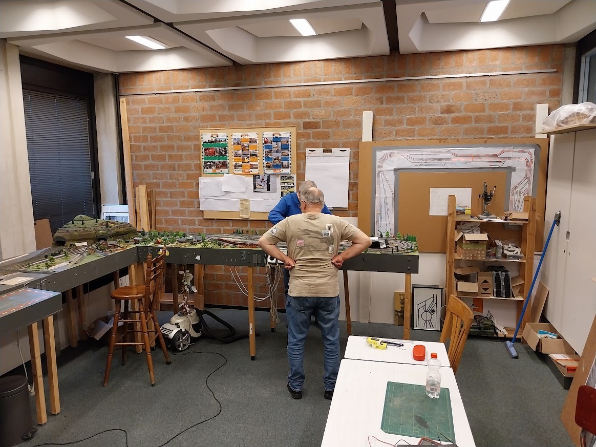 Dieter is ondertussen een locloods bijkleuren en bouwen.