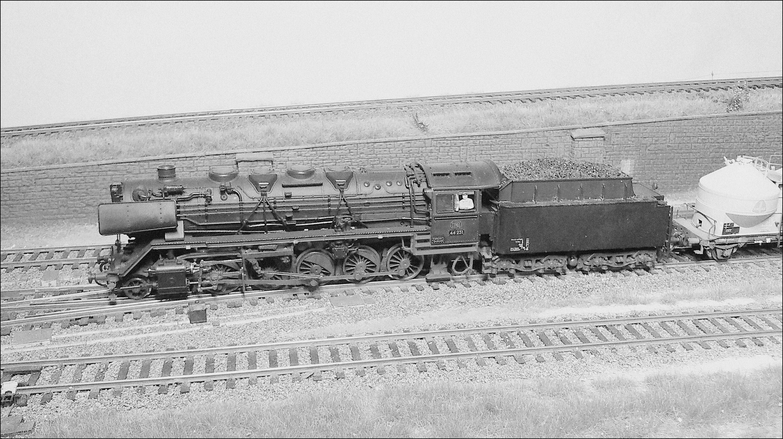 Plaatje van 44 231 in model. 44 231 was één van de (relatief) weinige 44ers die de schortplaten hadden behouden