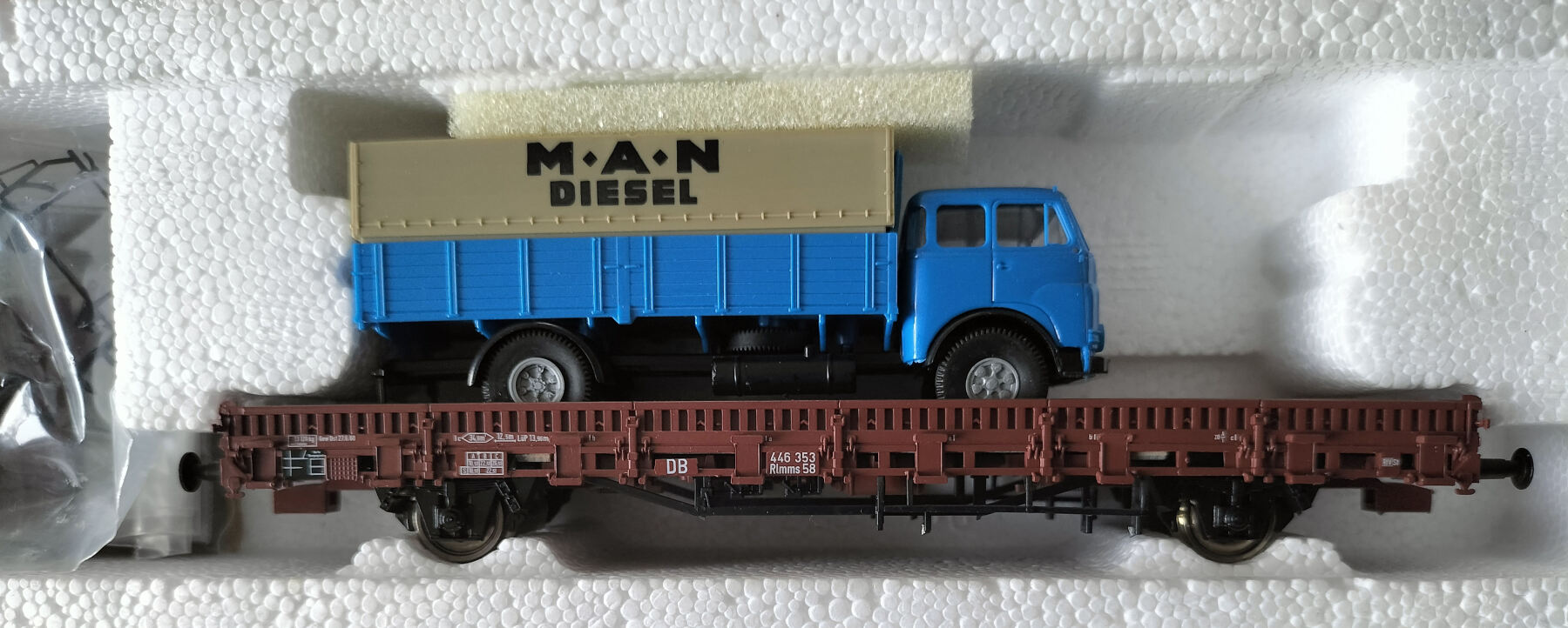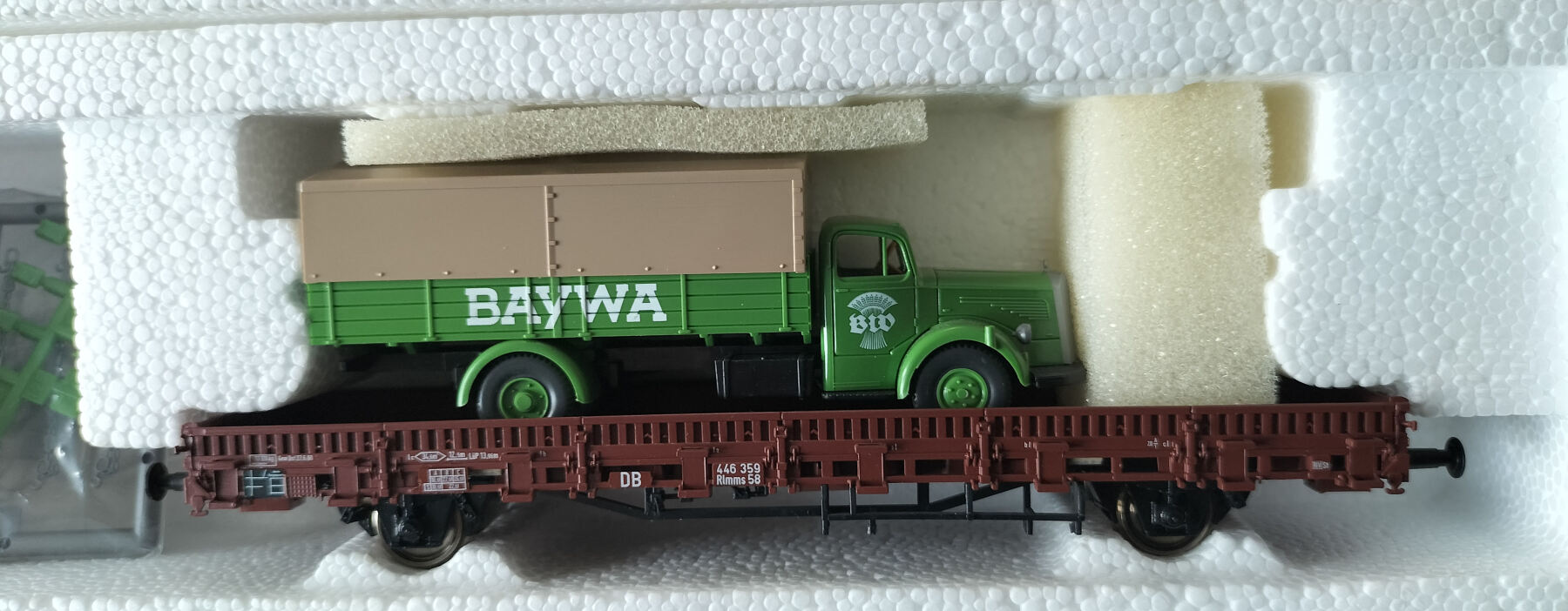 Zoek ik op roco rungenwagen mit mb baywa, kom ik mijn wagen (met mb neus) tegen maar dan met art.nr. 47492. Als ik op rongenwagen met man zoek, kom ik van alles tegen maar niet die MAN "Pausbacke". Ze zien er allebei nieuw en ongebruikt uit, al moet ik zeggen dat ik ze ooit een tweedehands heb overgenomen. Waarschijnlijk zijn er deksels van doosjes verwisseld, maar dat zal ik wel nooit te weten komen.