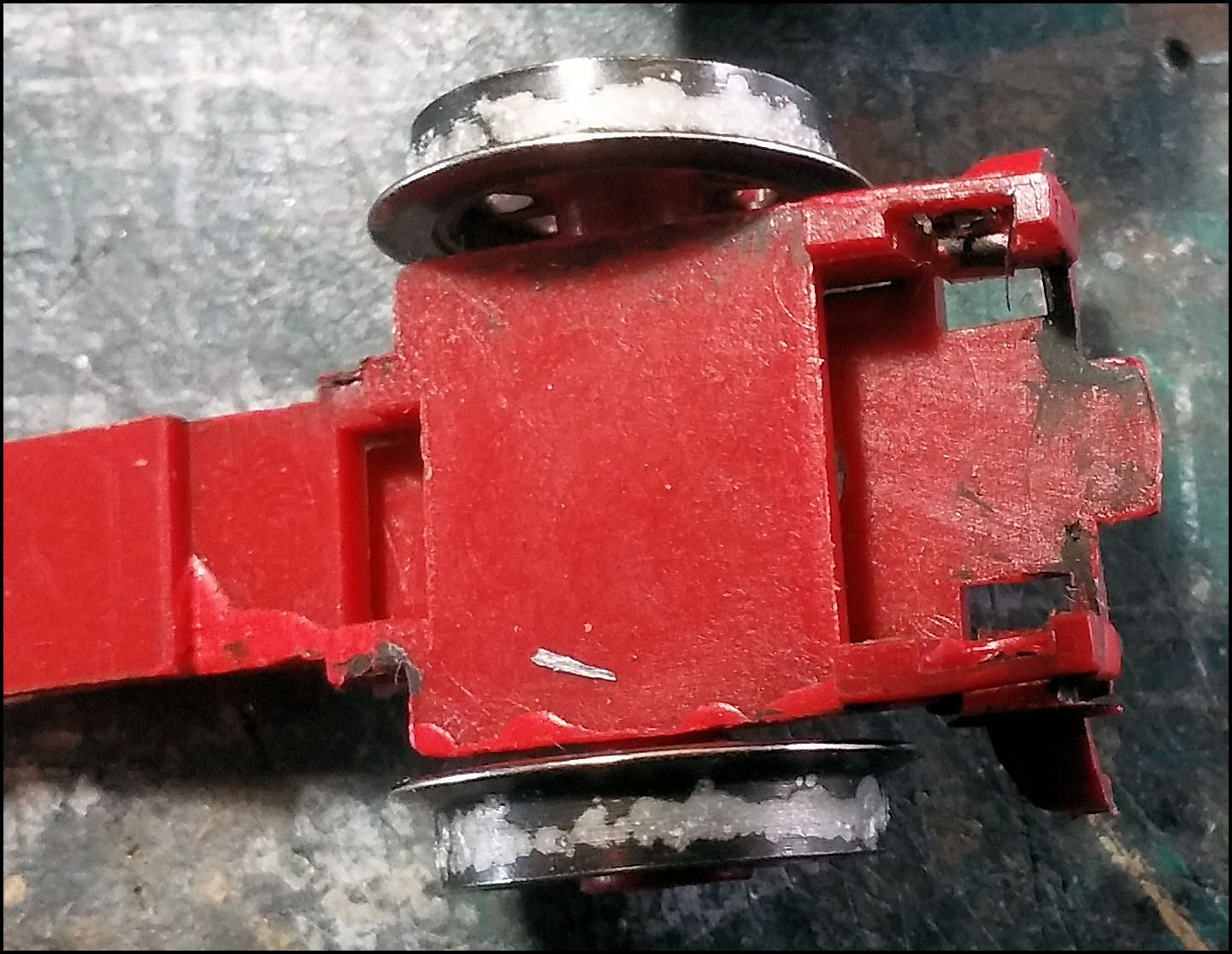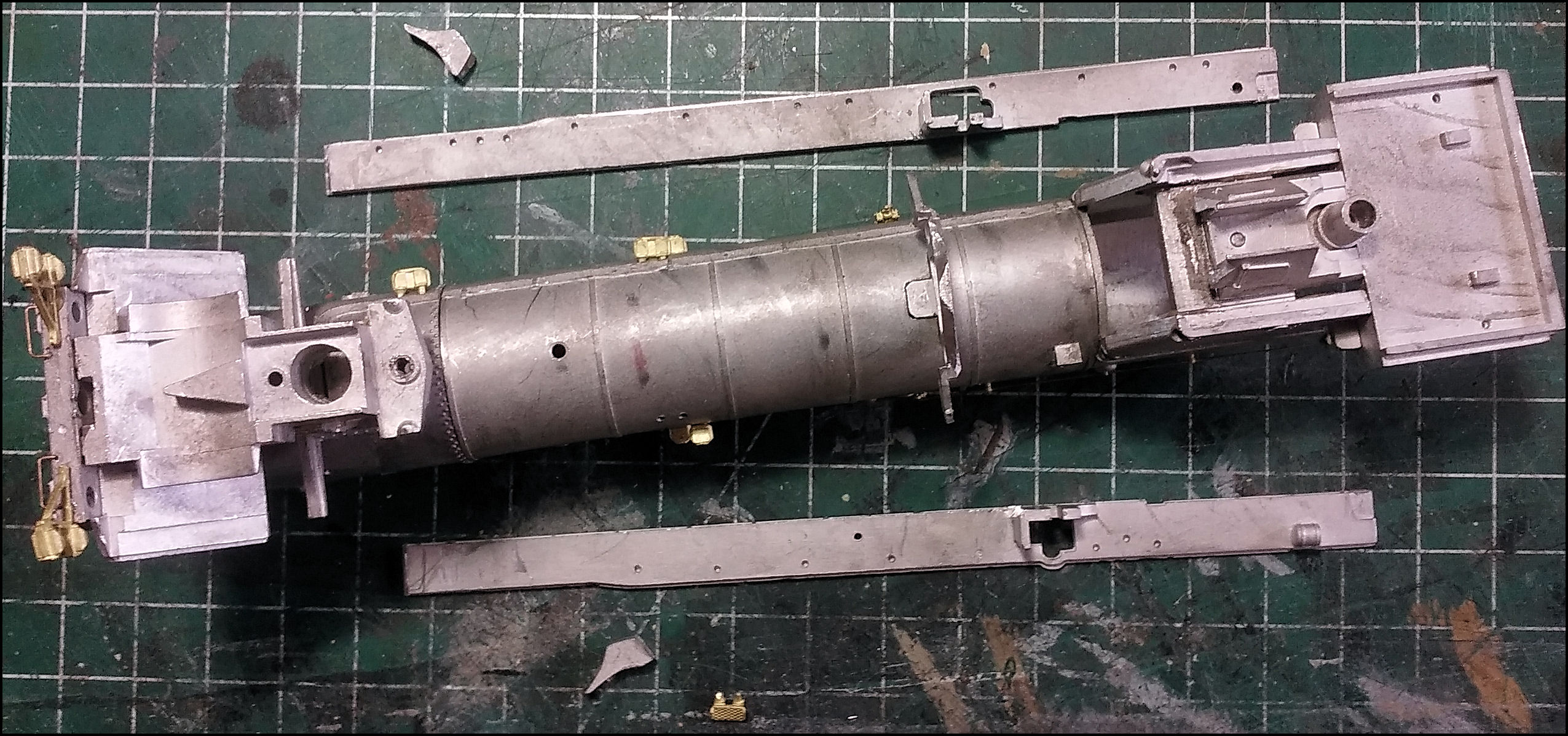 Het hele boeltje heeft is al die tijd samen met de overige onderdelen, dus ook het witmetaal, in het doosje opgesloten geweest.