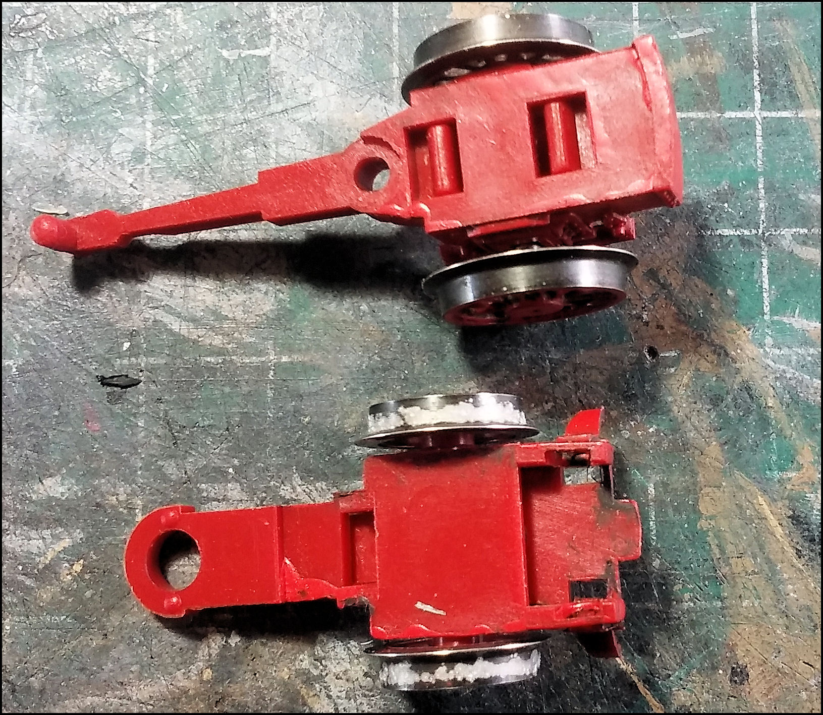 Verder heb ik ook geen enkel idee hoe ik e.e.a. zou kunnen herstellen. In het ergste geval wellicht alle assen nieuw bij Roco (d.w.z. Erwin Emmen) orderen...