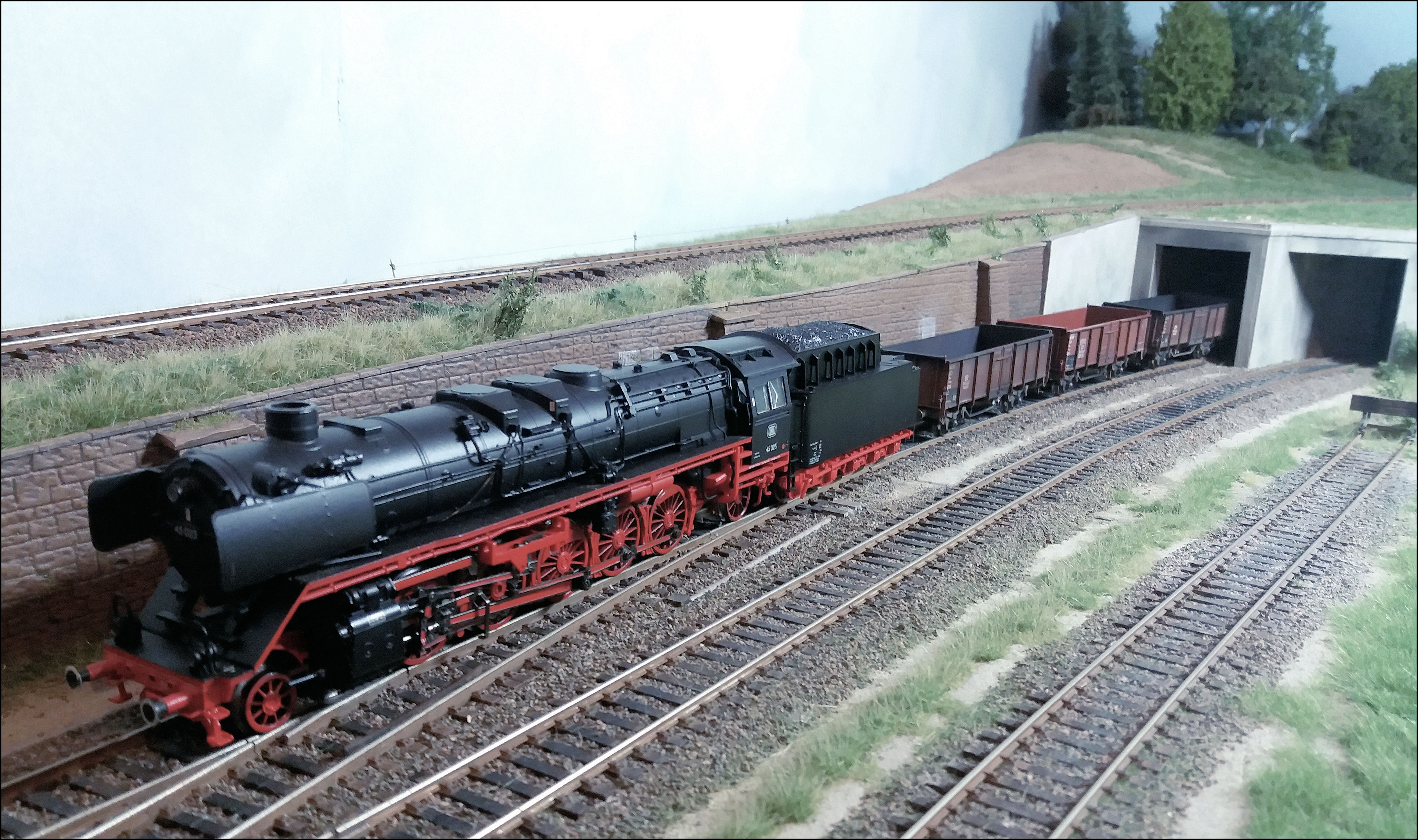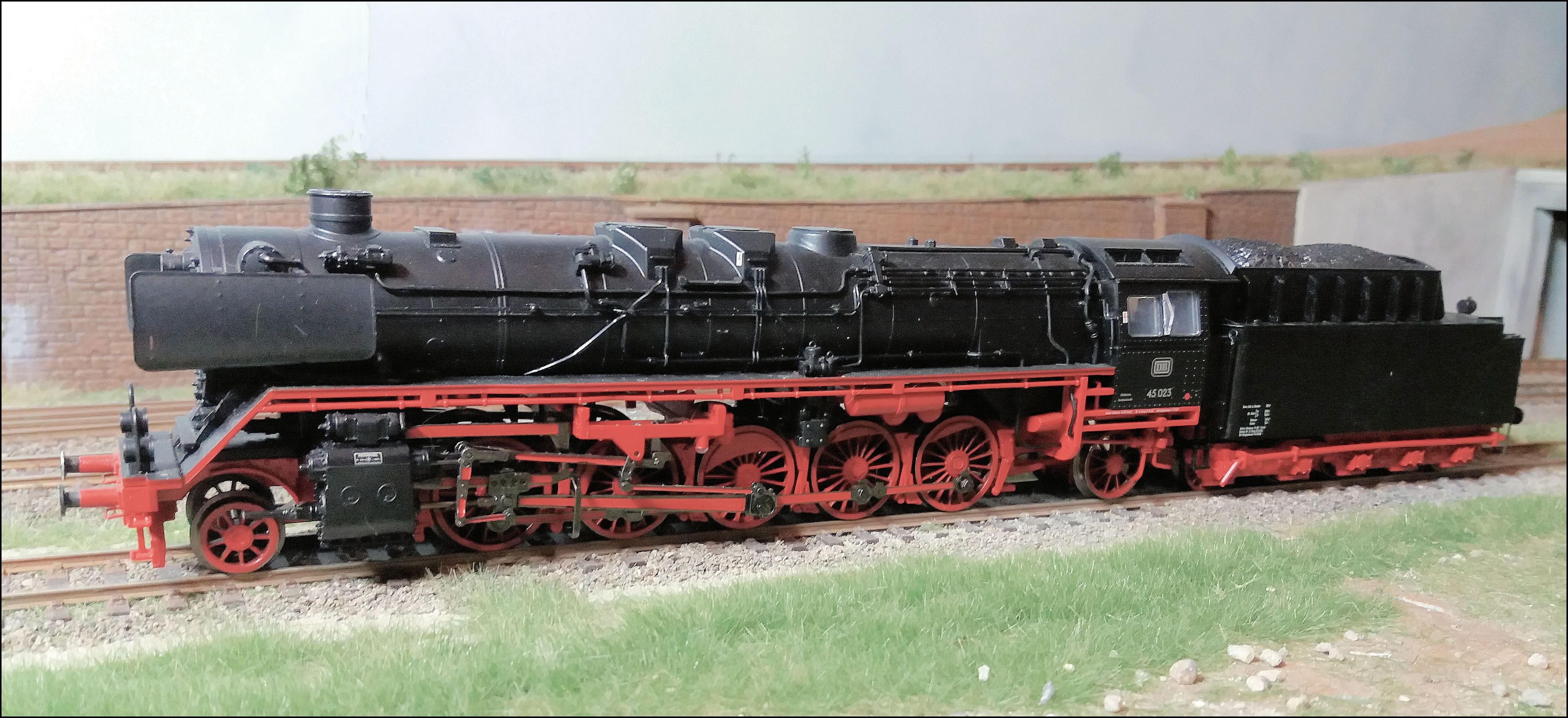 Mijn lok zal sowieso nog moeten worden aangepakt, er zullen nog nieuwe nummerplaten op moeten omdat in Minden de BZA-loks nummerplaten met rand hadden, en die zitten er niet op het model van Liliput. Kijken welk nummer we er dan op gaan plakken. Misschien dat het 45 023 blijft (hoewel die lok in '65 van Minden naar München verhuisde en sindsdien nog maar sporadisch werd ingezet), maar omnummeren naar 010 of de 019 is ook wel een optie.