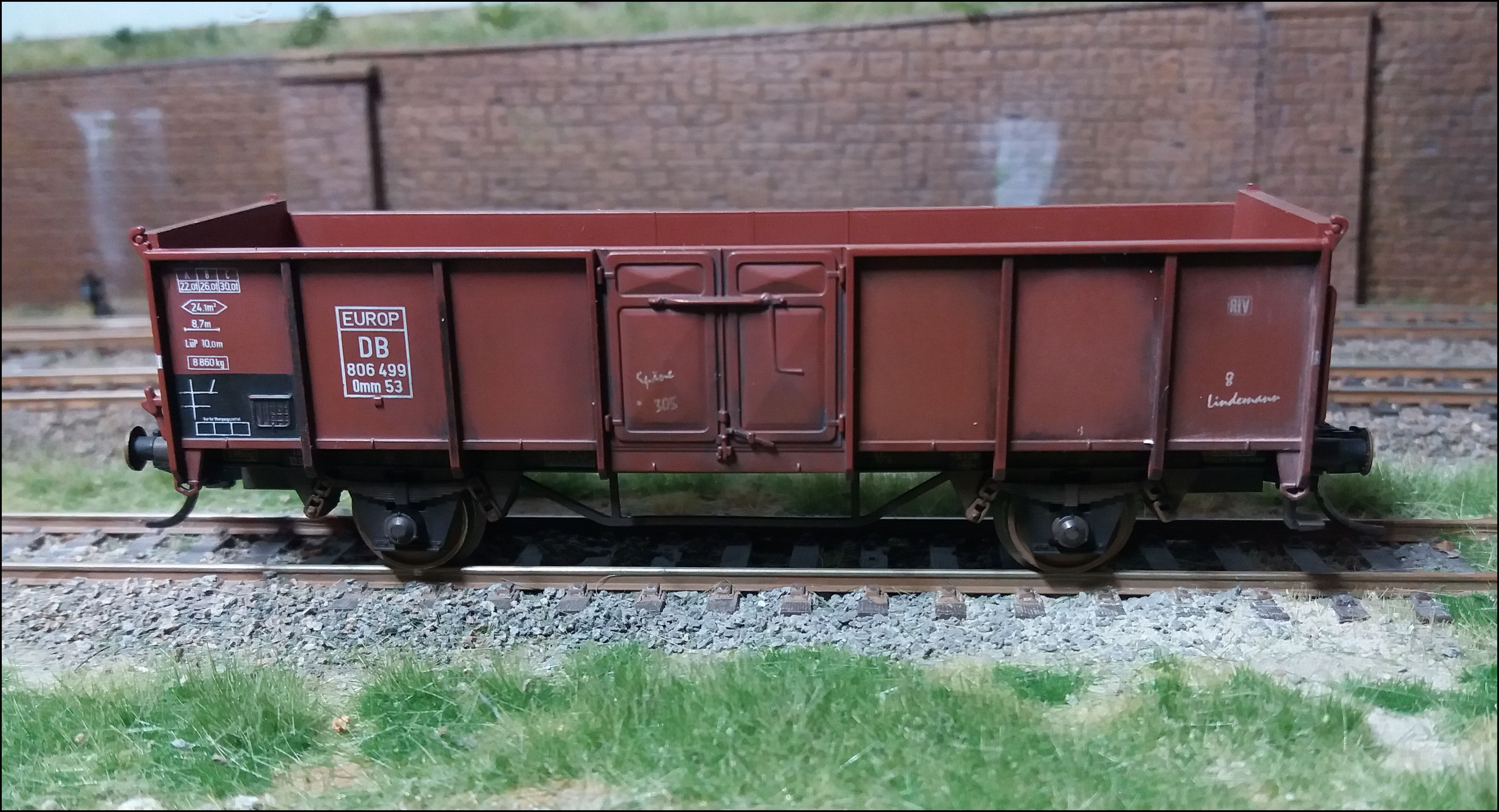 En het is ook wel eens leuk om een lege wagen te laten meelopen in een trein, juist dan kun je je helemaal op de binnenwanden -en de bodem- uitleven.