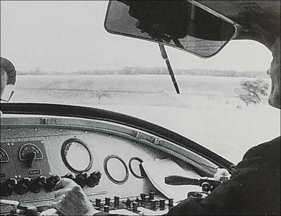 Cabine. Blik naar rechts, denkbeeldig naar de machinist.