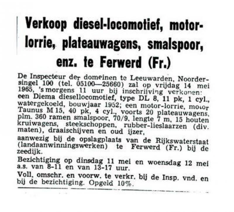 Wat betreft de locomotieven: in de jaren 50 reden er sowieso een kleine Diema en een zelfbouw exemplaar. Deze zijn ook in het filmpje van Prins Bernhard te zien. Het zijn echter niet dezelfde als bij de SSN. Ook is het zeer waarschijnlijk dat deze in 1965 verkocht zijn: