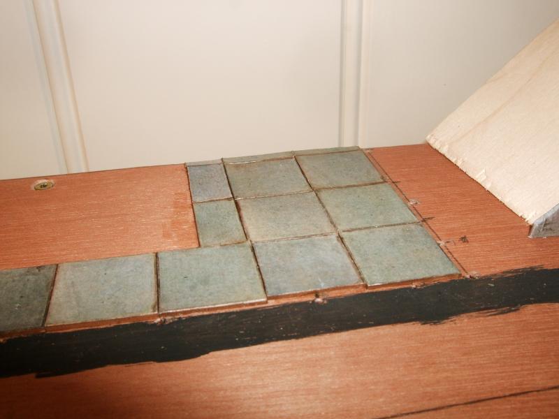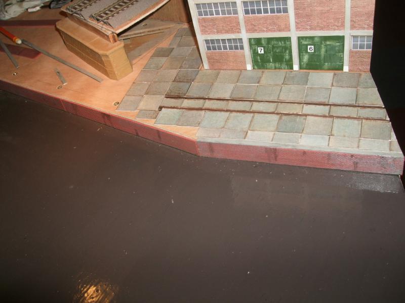 Deze dan op de modelbaan geplakt, en de naden met een donkerbruine viltstift op kleur gebracht.