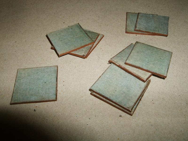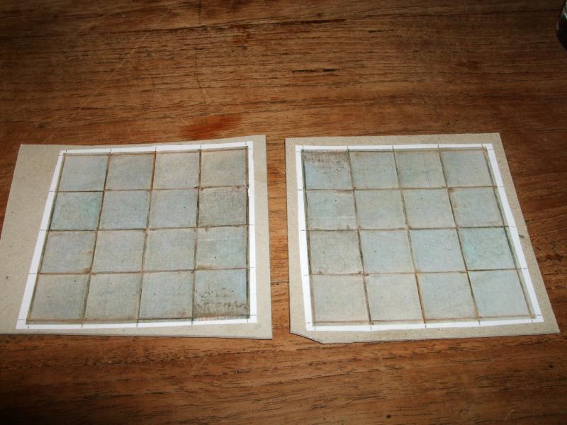 Uitgeprint, en op grijs karton geplakt. Platen per stuk uitgesneden. (Anders krijg je geen hoogteverschillen tussen de platen, en dat ziet er te vlak uit.)