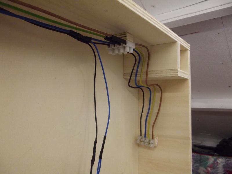 Voor stroom doorvoering kan je twee kroonsteen strippen gebruiken, waar je aan kant van een kroonsteen strip stukjes koperdraad (Aarde montage draad, bijvoorbeeld ;D) van 2 cm lang doet. Die korte stukjes komen in een lege kant van een andere kroomsteen strip. Voila, stekkers en stopcontacten met 12 polen en goedkoop. ;D