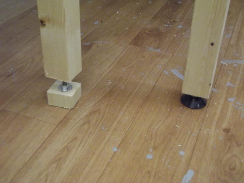 Voor poten kun je gebruikmaken van 44 x 44mm. balken, met hieronder een stelpootje.