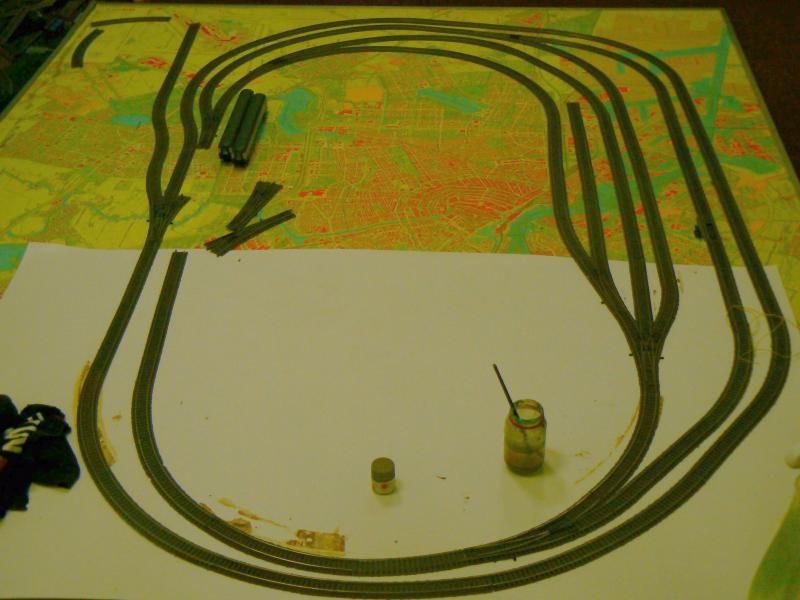 ik heb eindelijk mijn baanplan in orde en ben nu bezig om de rails te weatheren. hier zijn wat Foto's: