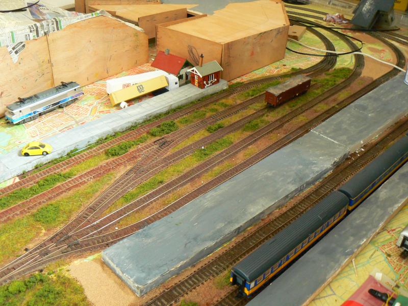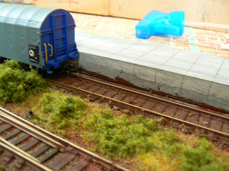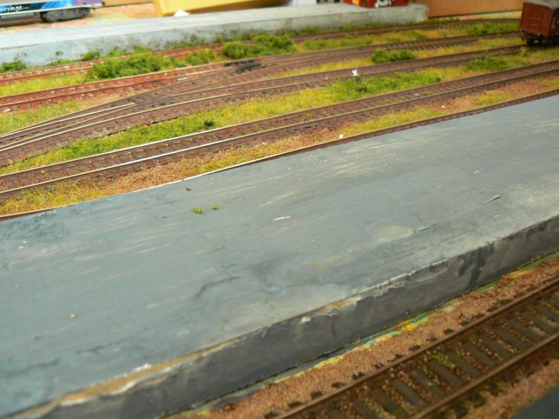 ik ben weer verder gegaan met het ballasten van het rangeerterrein en heb nieuwe perrons gemaakt. Hier wat Foto's: